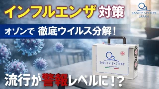 インフルエンザが警報レベルで流行中。基本対策に加え、空気中のウイルス対策が重要です。高濃度オゾン発生器サニティシステムが空間全体を除菌し、安心できる環境づくりをサポートします。