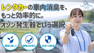 レンタカーの車内消臭を効率化。業務用オゾン発生器「サニティシステム」でニオイ・感染症対策を行い、清潔な車内環境と業務効率の向上を両立します。