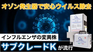 対策サブクレードKとは?インフルエンザ新変異株の特徴と効果的な空間ウイルス対策 この冬、日本でも報告が増えているインフルエンザの新変異株「サブクレードK」。空気中のウイルスにも備えられる、高濃度業務用オゾン発生器「サニティシステム」の特長を紹介します。 2025.11.26対策